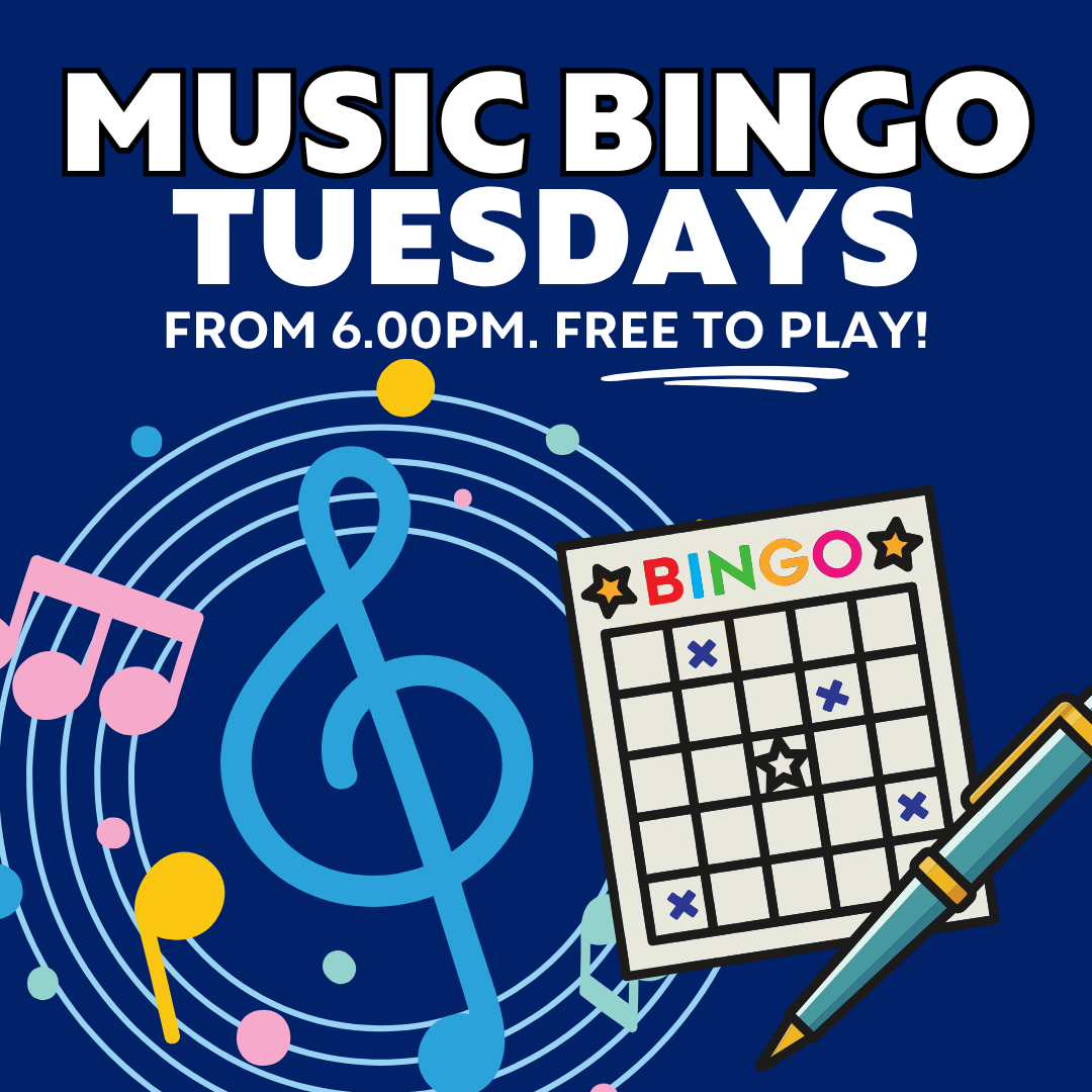 Test your song knowledge with our Free Musical Bingo every Tuesday night. Sing-a-longs encouraged!