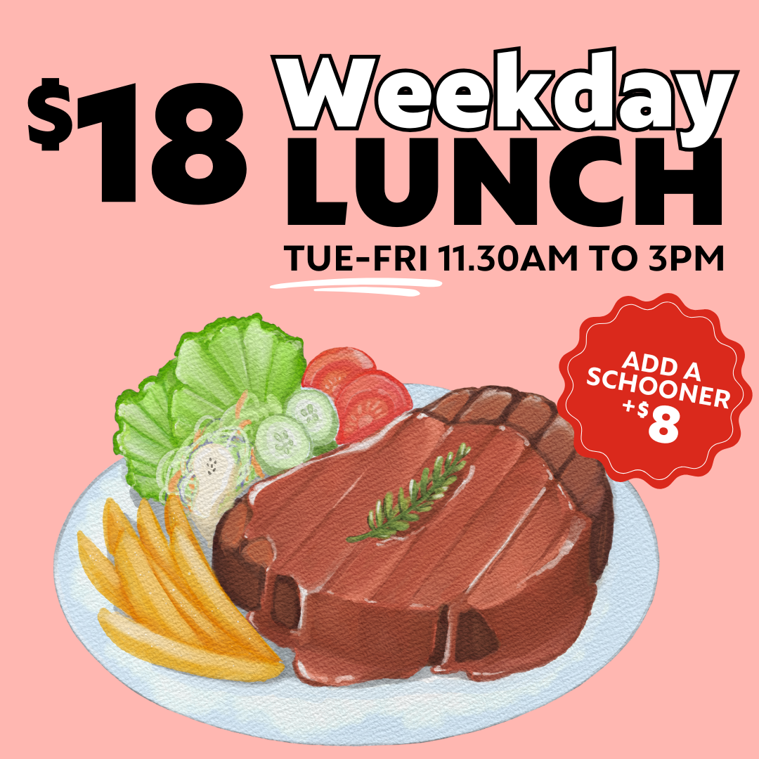 It’s an epic value lunch option with your choice of our 200g Grain-Fed Rump Steak, Pizza Sando or House Smoked Hot Link Hoagie! Offer may not be available on Public Holidays or Special event days.